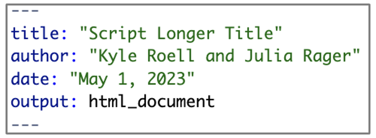 ########################################################################This block of comment operators is common in .R but not .Rmd files because .Rmd files have their own specific type of header, known as the YAML, which contains the title, author, date, and formatting outputs for the .Rmd file: