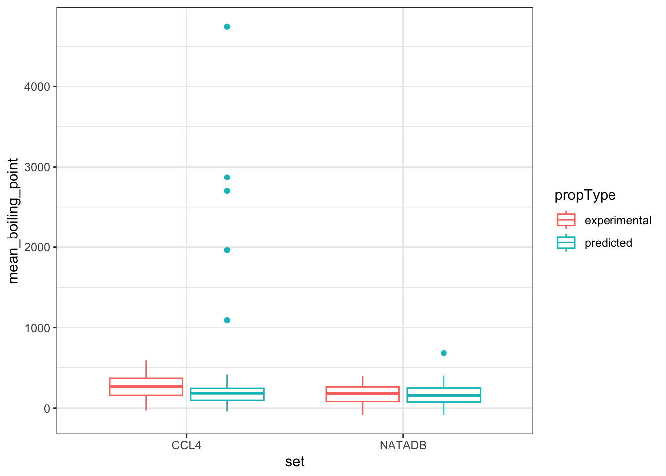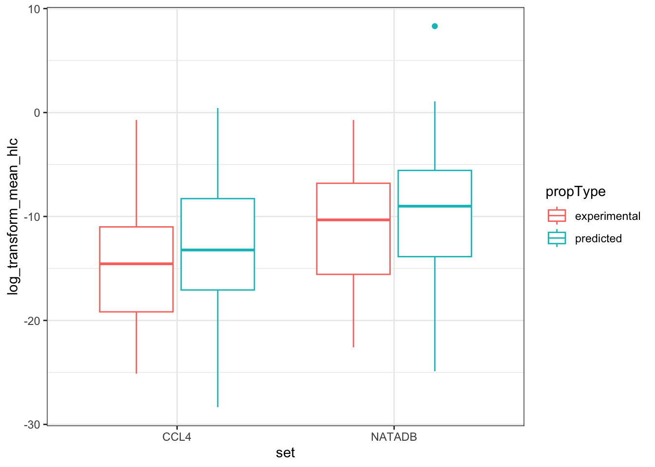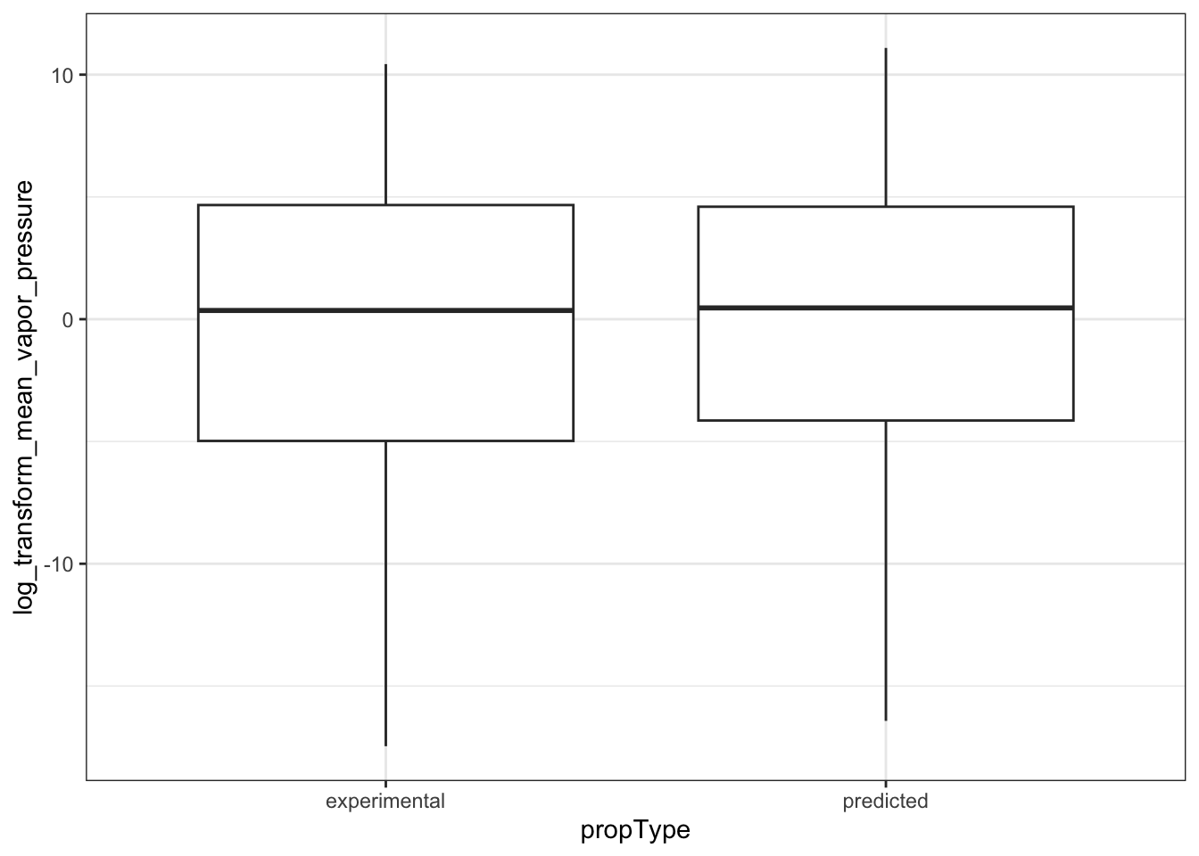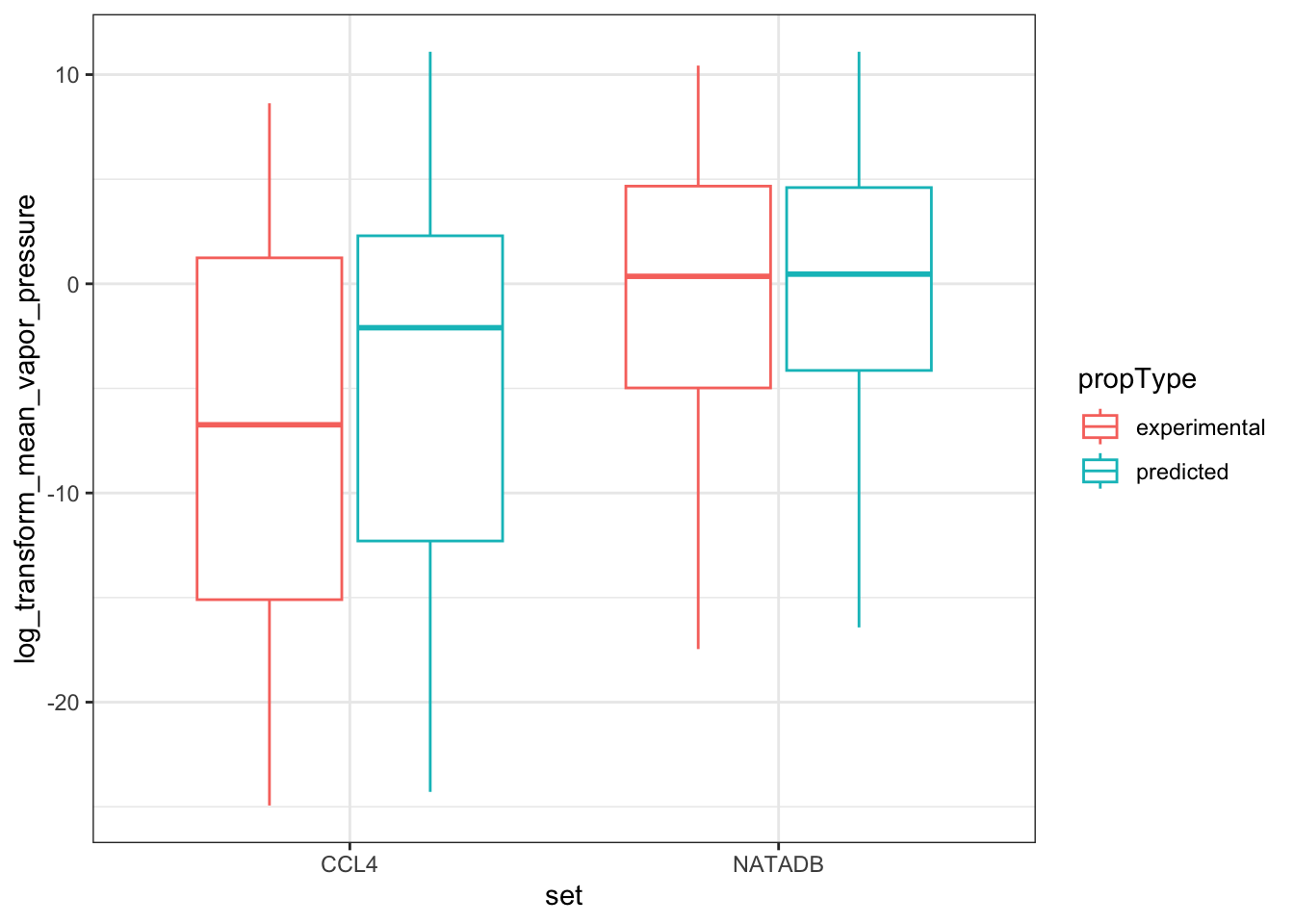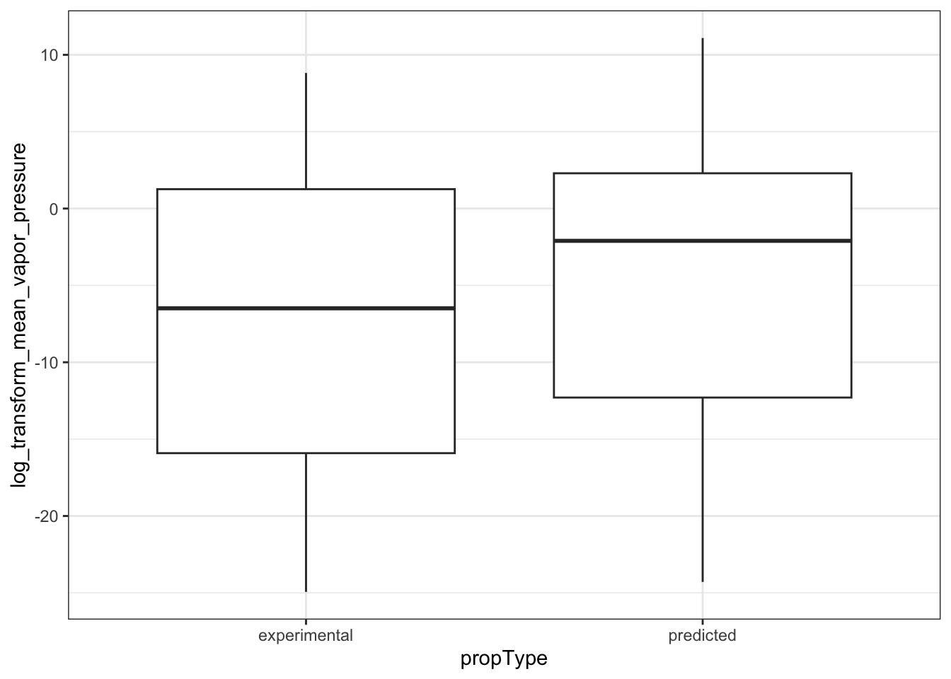 The physico-chemical property data are reported with both experimental and predicted values present for many chemicals. Are there differences between the mean predicted and experimental results for a variety of physico-chemical properties?