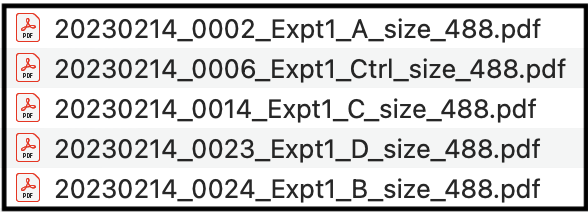 If your files are not already named in a way that reflects unique sample information, such as the date of the experiment or sample ID, update your file names to contain this information before proceeding with the script. Here are the names for the example PDF files:
