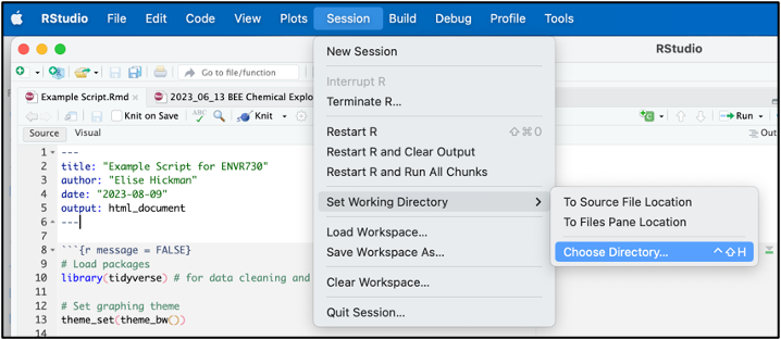 Another step that is commonly done at the very beginning of your code is setting your working direction. This tells your computer where to look for files that you want to import and where to deposit output files produced during your scripted activities.