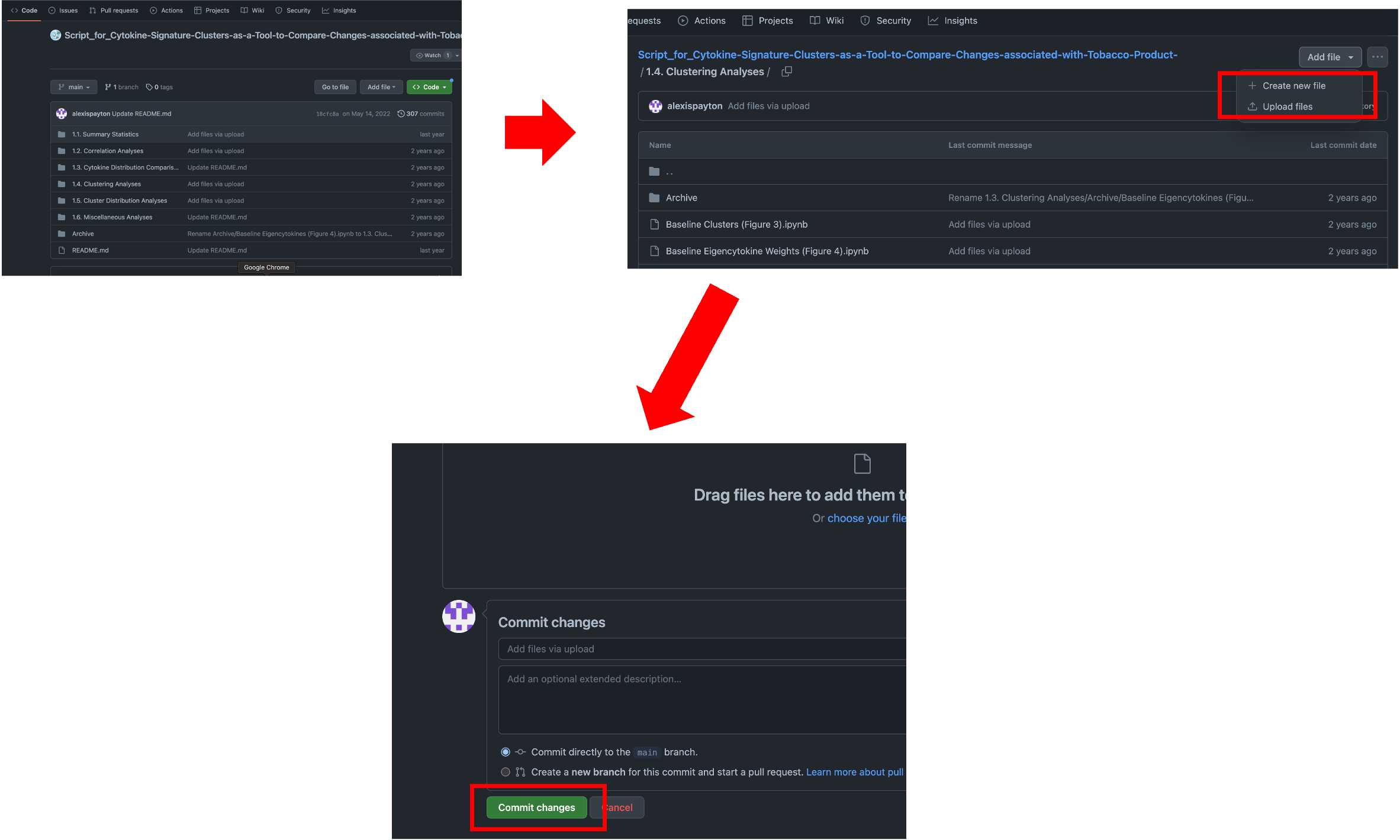 Click “Add file” then click “Upload files”. Drag and drop your file containing your script into github and click “Commit changes”.