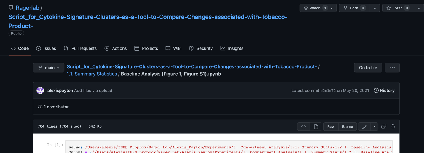 In summary, this training module serves as a basic tutorial for sharing code on Github in a way that is beneficial for scientific research. Concepts discussed include uploading and updating code, making a repository easily readable for manuscript submissions, and tracking code changes across collaborators. We encourage trainees and data scientists to implement code tracking and sharing through Github and to also keep up with current trends in data analysis documentation that continue to evolve over time.