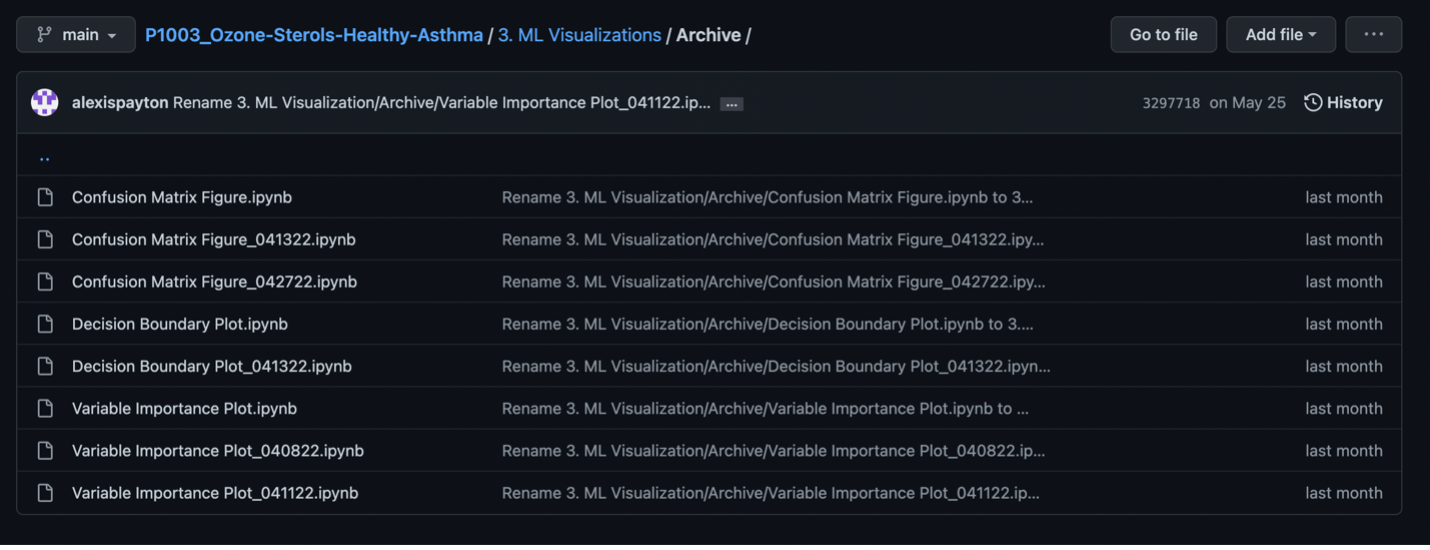 Once the old file version has been archived, now upload the most recent version of your code to the main folder. Based on the screenshot above, that would be under “3. ML Visualizations”.