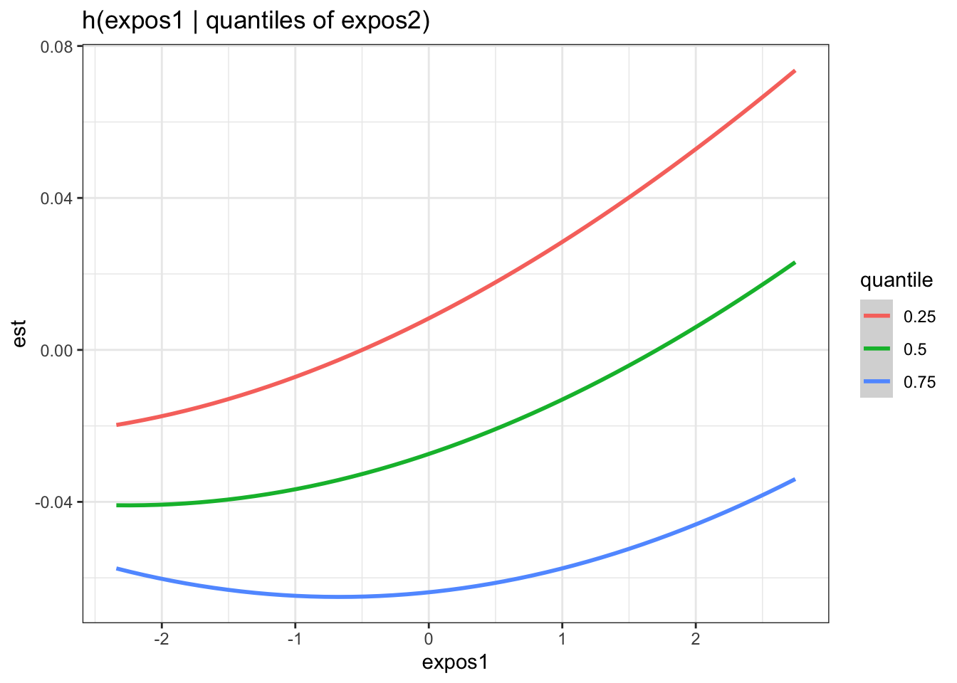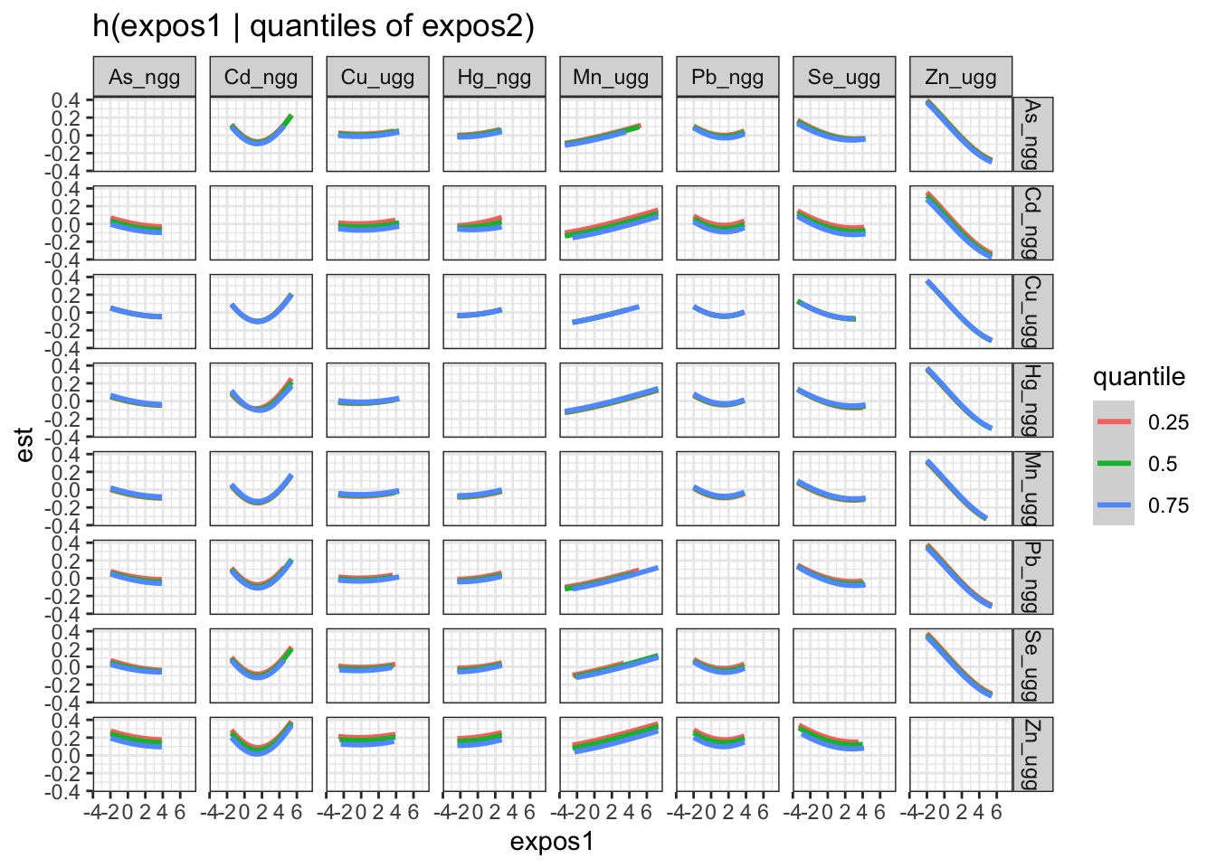 ggtitle("h(expos1 | quantiles of expos2)") +