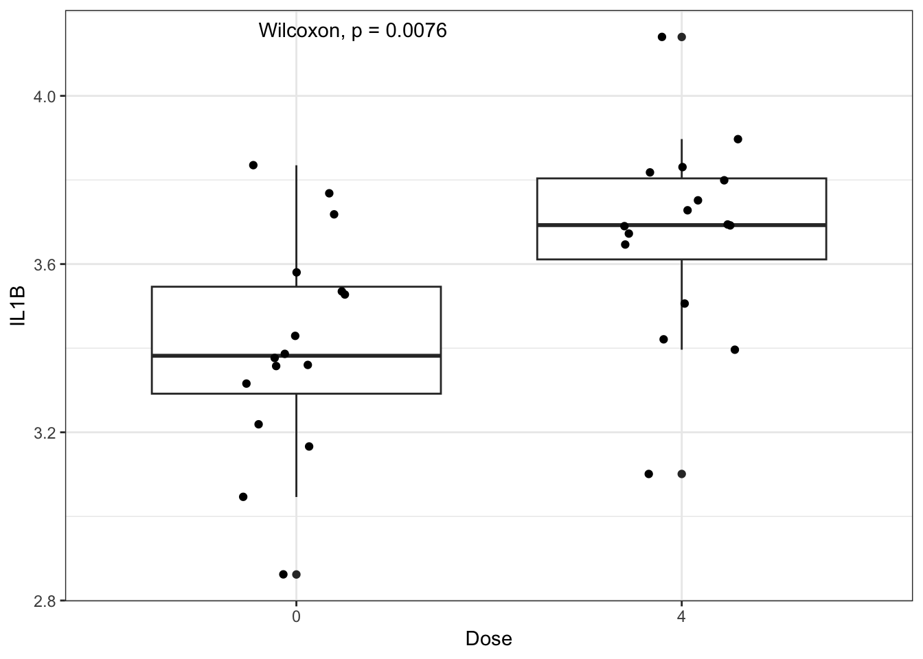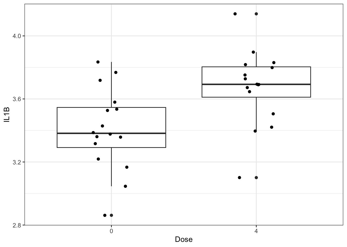 ggplot(biomarker_data_0vs4, aes(x = Dose, y = IL1B)) +
